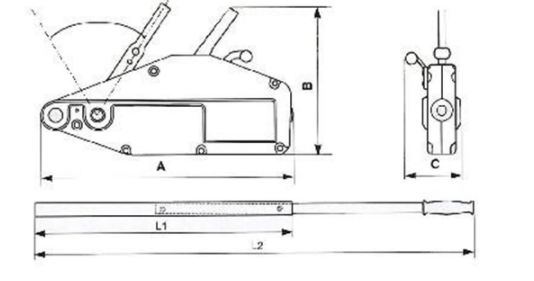 額定起重量(KG) | 額定收拉力N | 額定前進(jìn)行程 | 鋼絲繩直徑(mm) | 鋼絲繩安全系數(shù) | 整機(jī)安全系數(shù) | 最大載荷(KG) | 整機(jī)重量(KG) | 整機(jī)尺寸 | L1(mm) | L2(mm) | ||||||