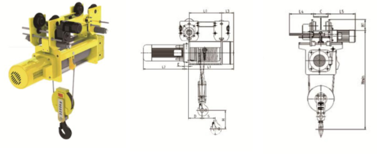 | 型號(hào) | 起重量(T) | 工作級(jí)別 | 滑輪倍率 | 起升速度(m/min) | 起升電機(jī)功率(kw) | L2(mm) | φmm | Amm | A0mm | Bmm | Hmin mm | L3 mm | S mm | |