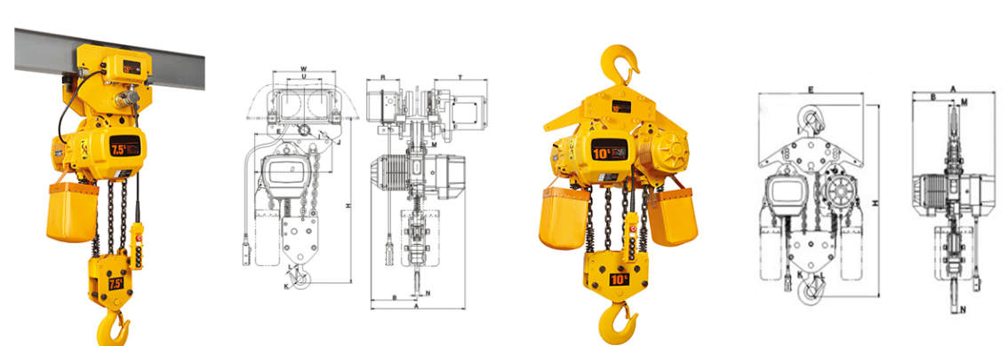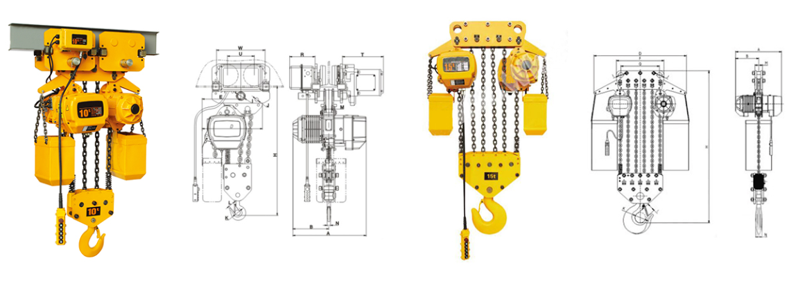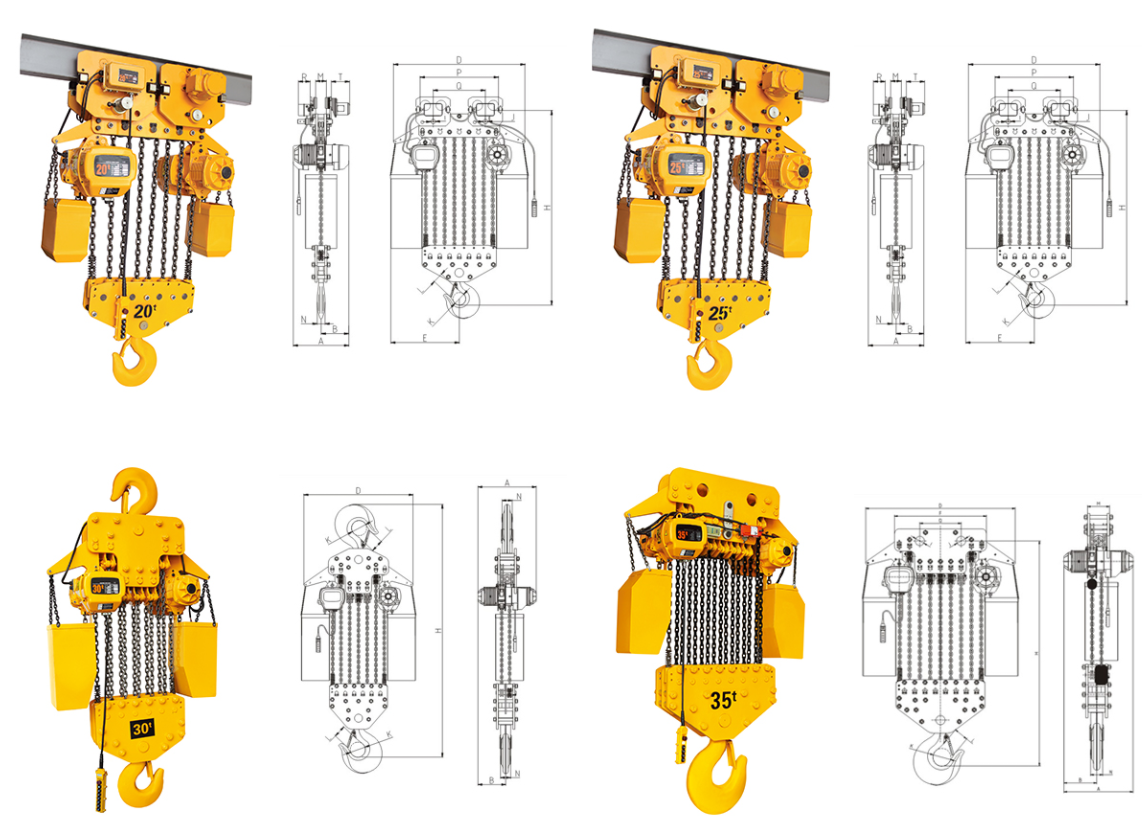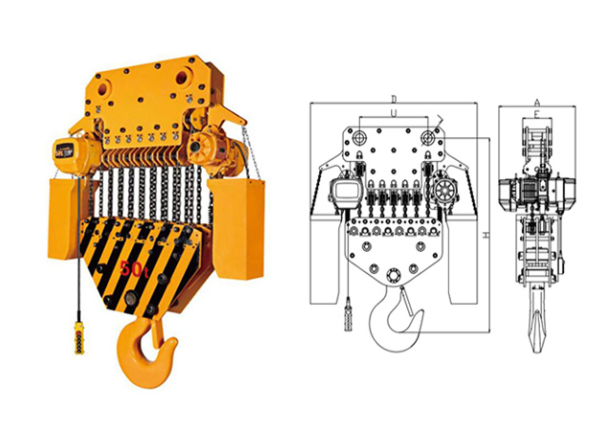 | 掛板式環(huán)鏈電動(dòng)葫蘆(7.5T-50T) 尺寸參考: | ||||||||