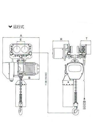 | 運行式環(huán)鏈電動葫蘆(0.25T-5T) 尺寸參考: | ||||||